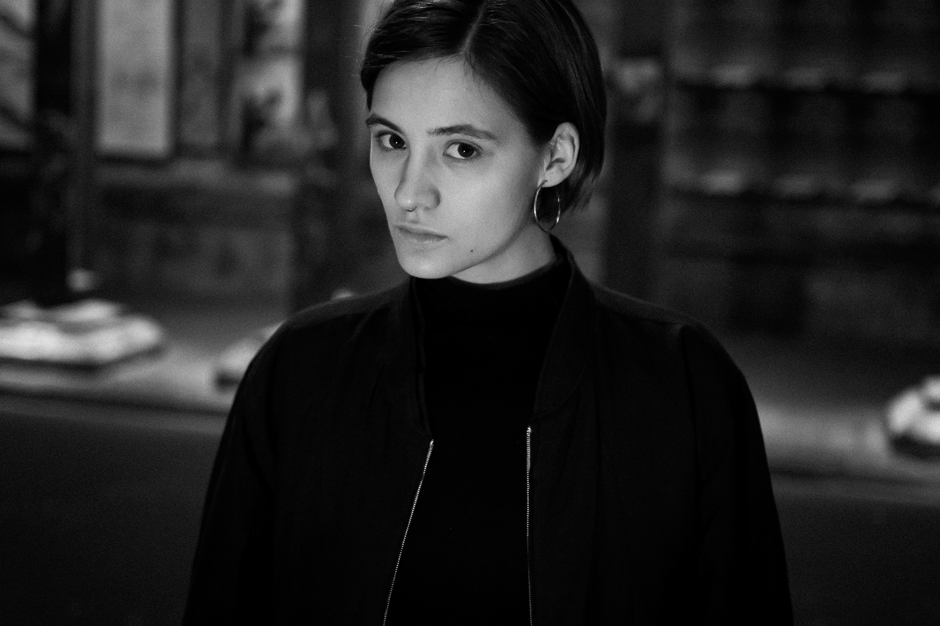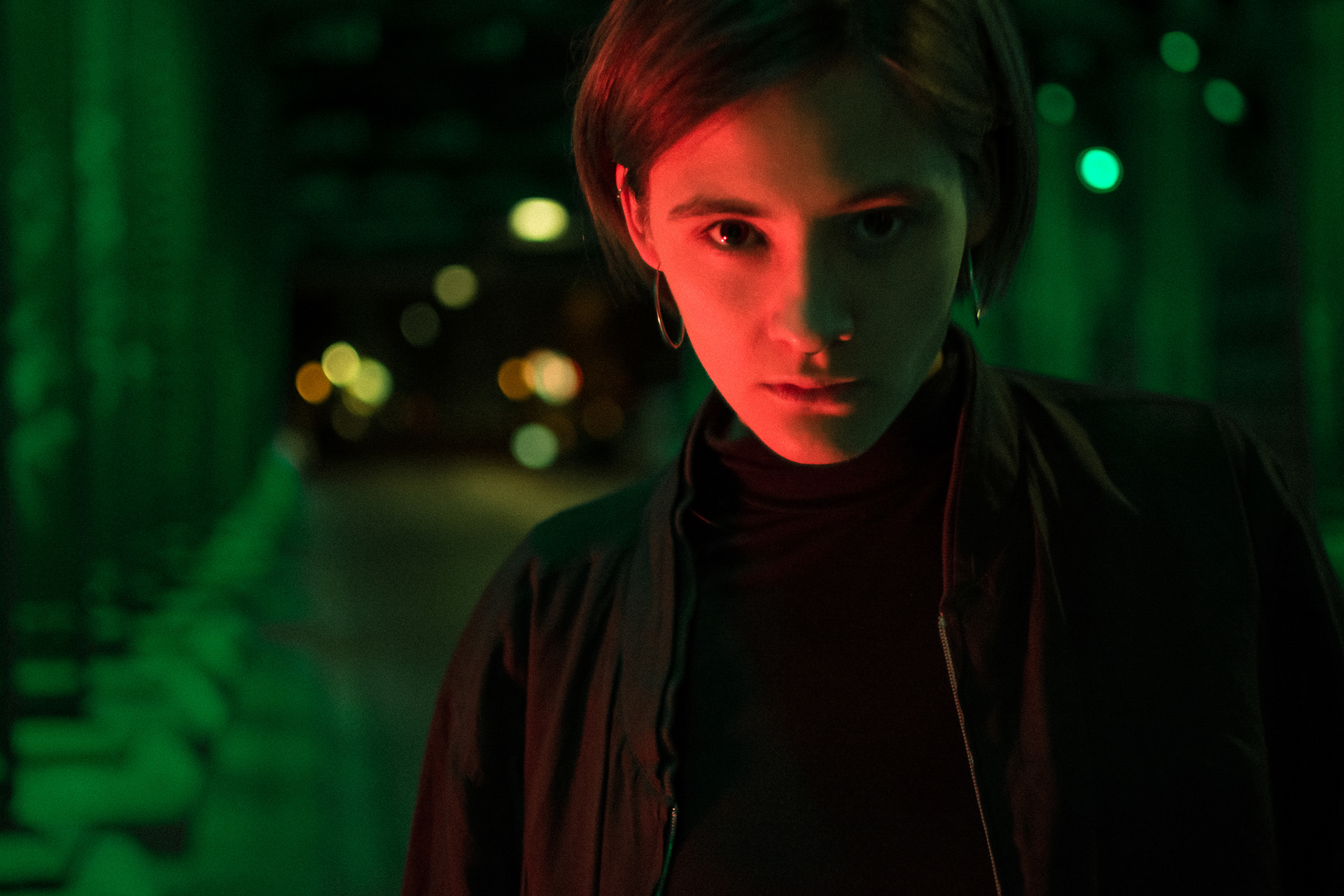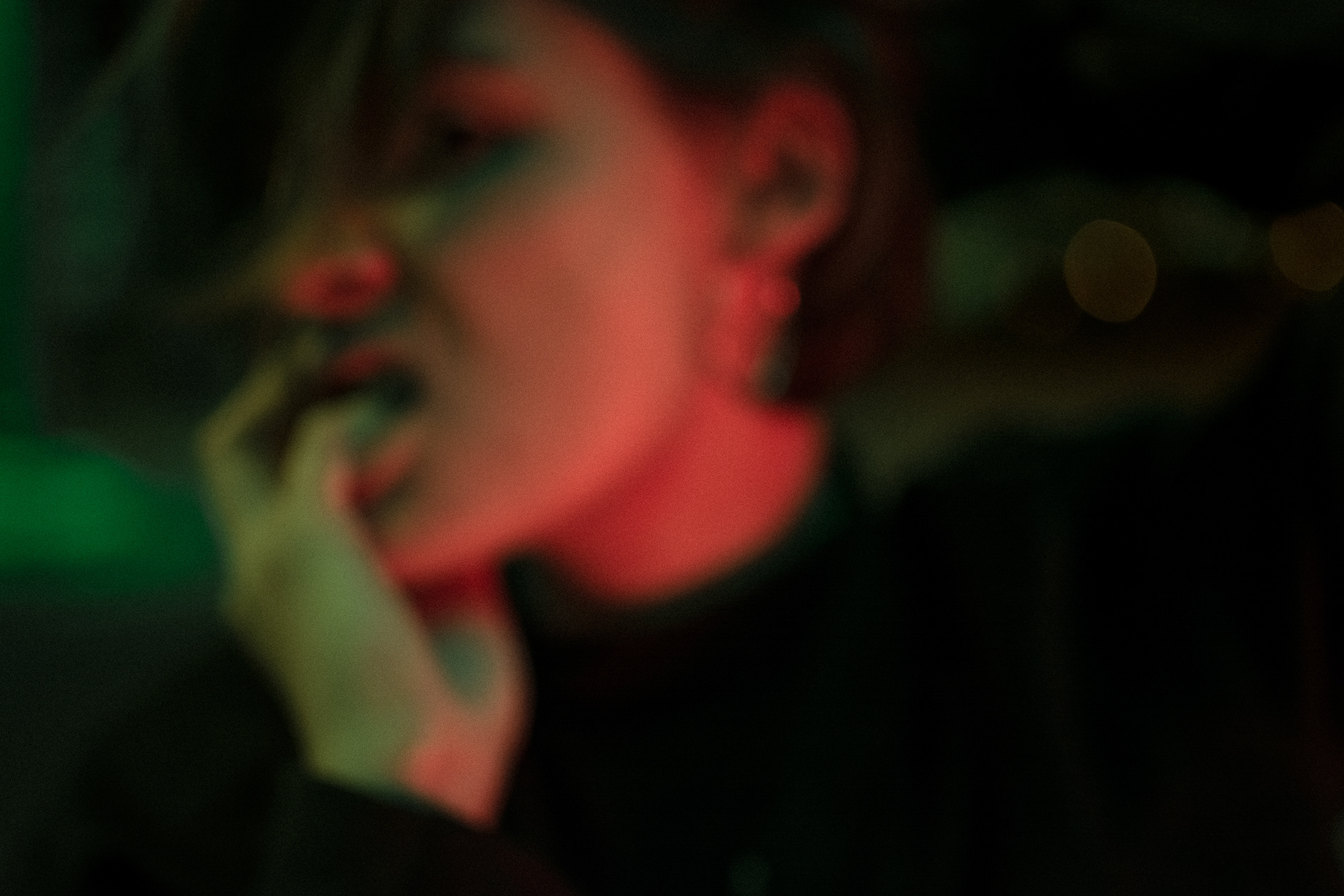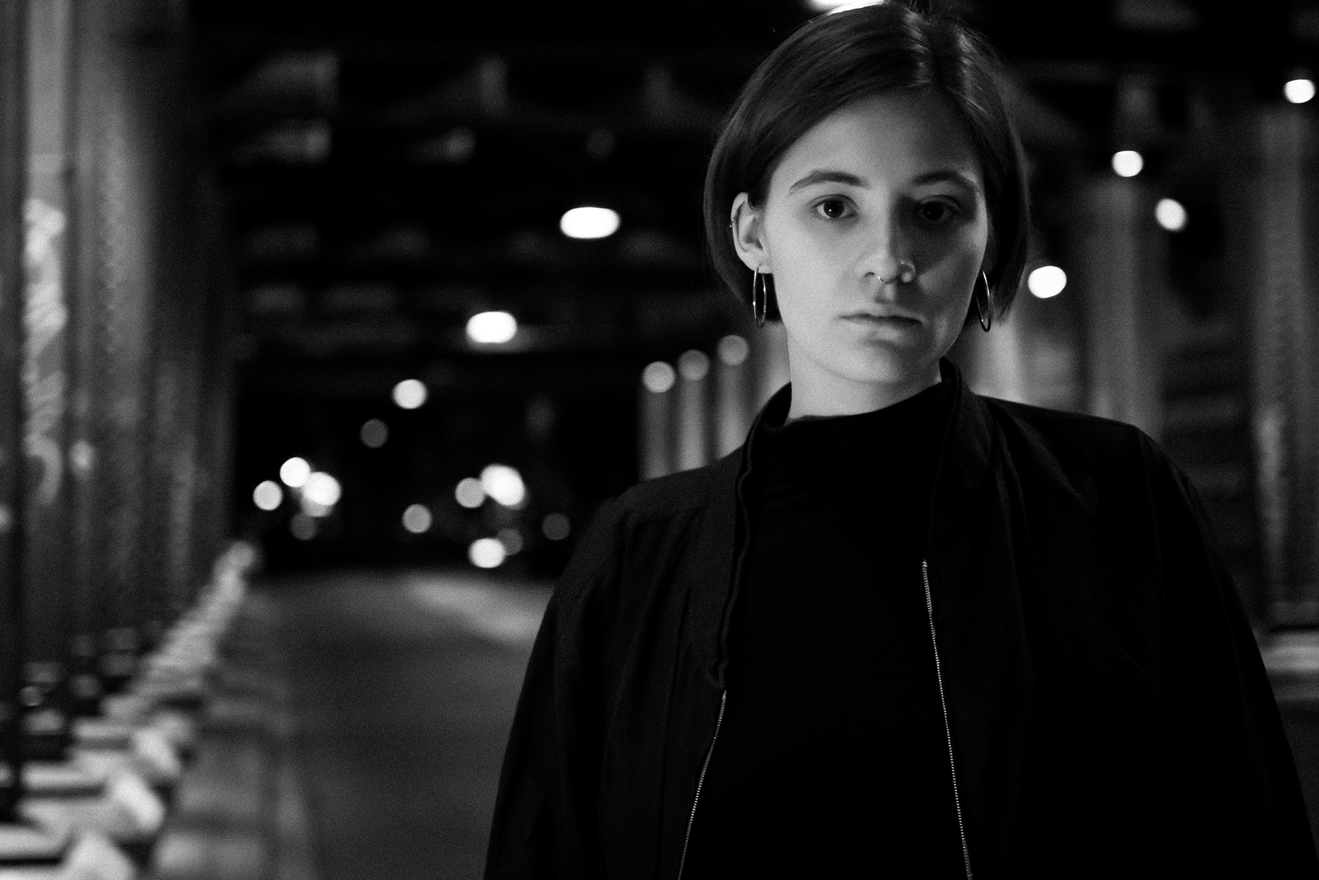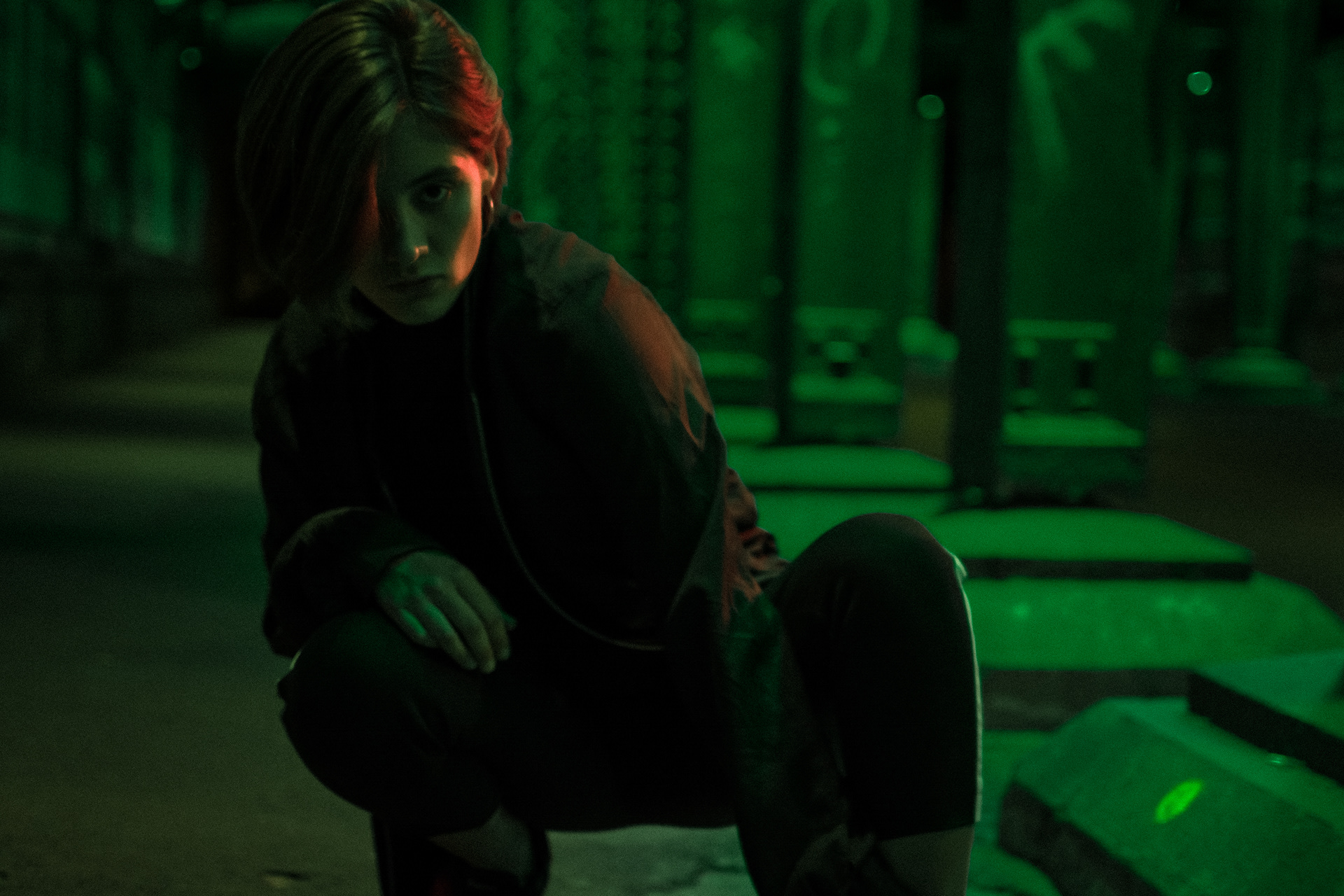 Dark setting under a bridge in cologne. colourful lighting setup.